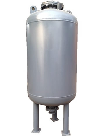 囊式定壓罐的工作原理:囊式定壓罐是由鋼質(zhì)外殼,橡膠氣囊內(nèi)膽構成的儲能器件,橡膠氣囊把水室和氣室完全隔開。當系統(tǒng)壓力降低時,預充氮氣的壓力將氣囊里的水擠入系統(tǒng),減緩系統(tǒng)壓力降低,起到穩(wěn)壓作用;當系統(tǒng)壓力升至高于氣室里氮氣的壓力時,水進入氣壓罐的氣囊中,此時氣囊膨脹,吸收壓力,防止系統(tǒng)壓力急劇上升,起到穩(wěn)定系統(tǒng)壓力作用。